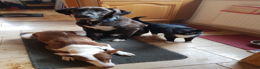 Im Hintergrund helfend immer an meiner Seite meine Hunde Ella und Milo.